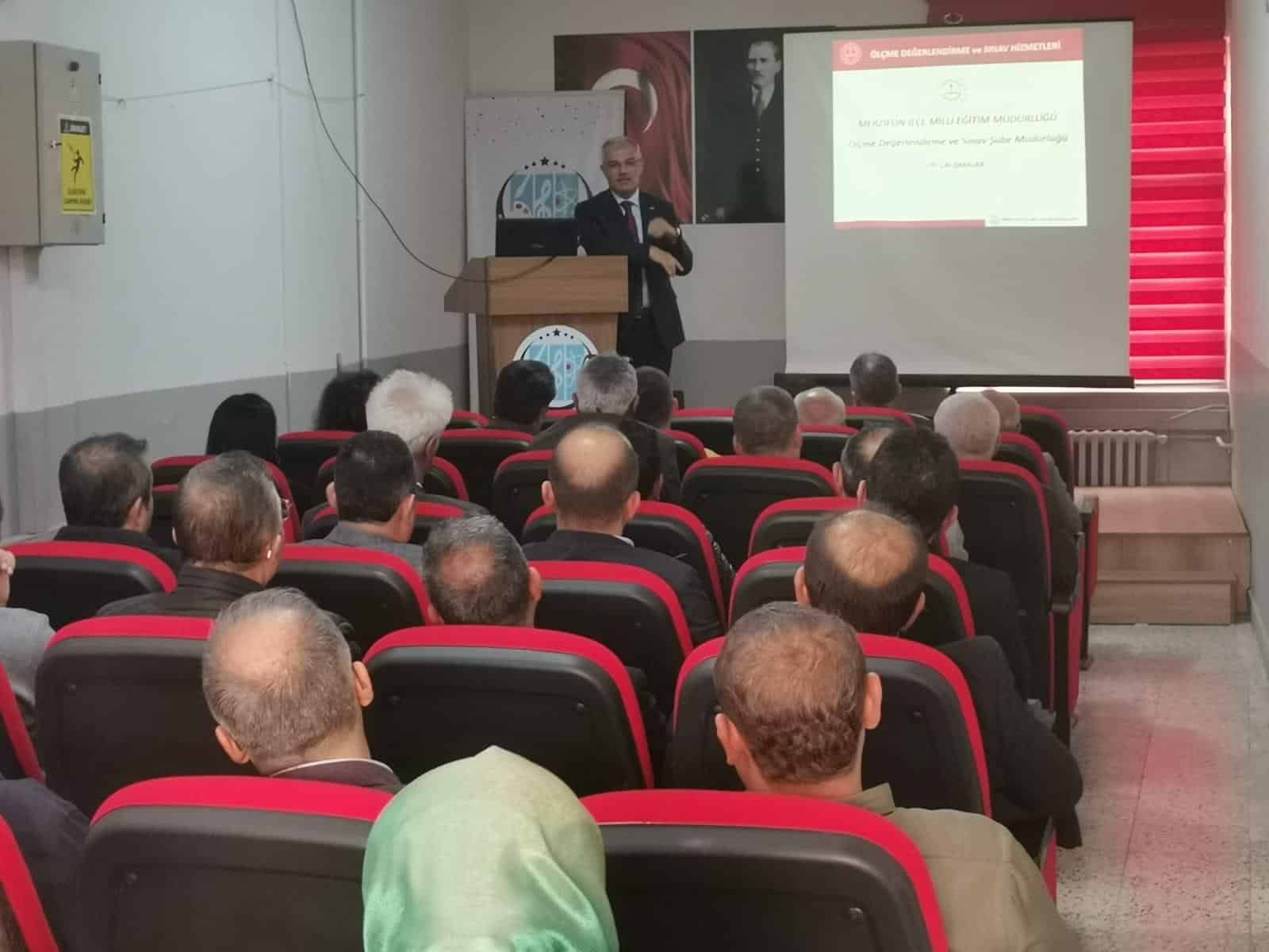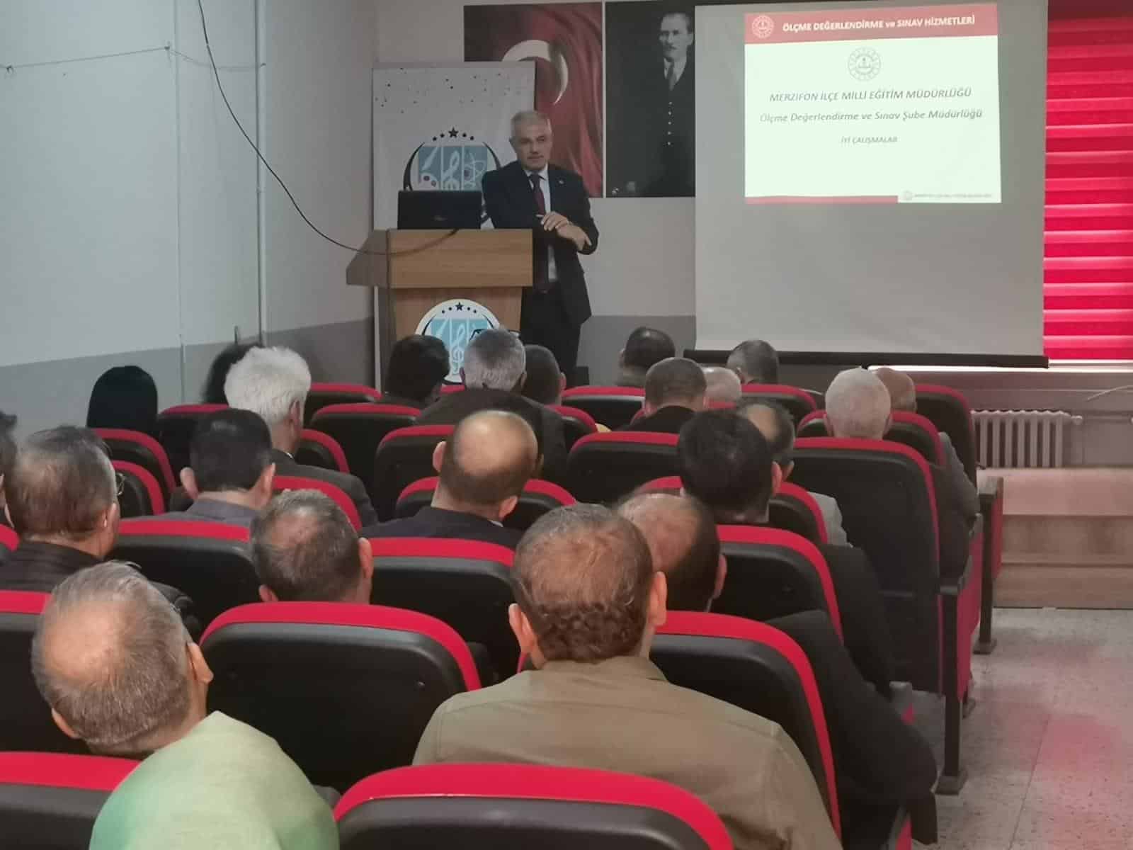 Merzifon Atatürk Bilim ve Sanat Merkezi toplantı salonunda, İlçe Milli Eğitim Müdürümüz Ahmet YOZGAT başkanlığında "2025-2026 Eğitim Öğretim Yılı Ortak Sınavlar Bilgilendirme Toplantısı" gerçekleştirildi.