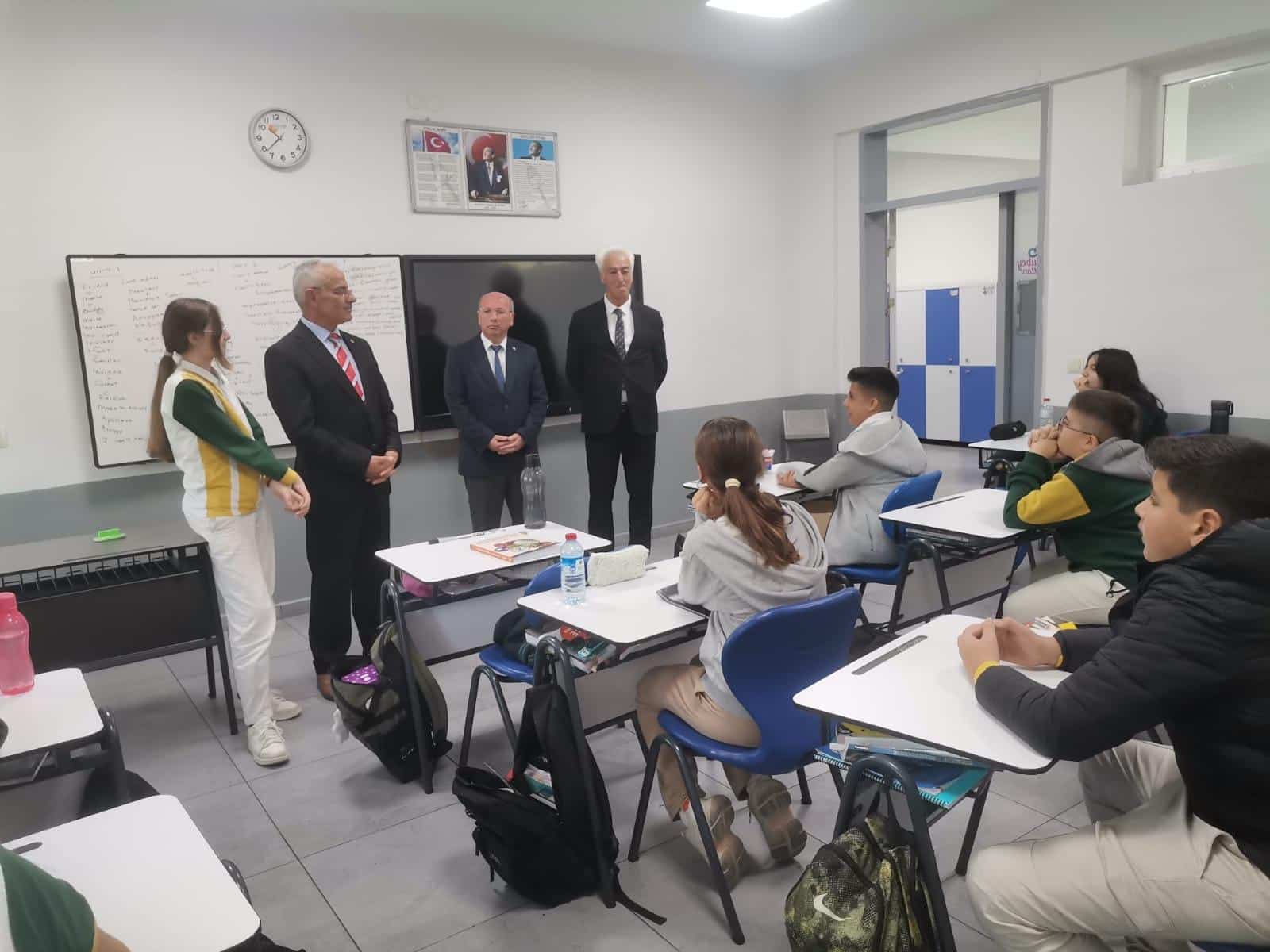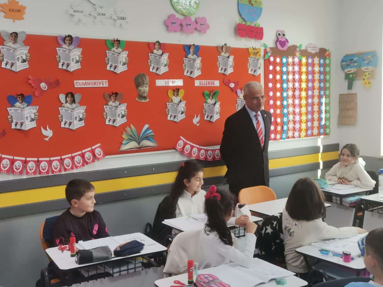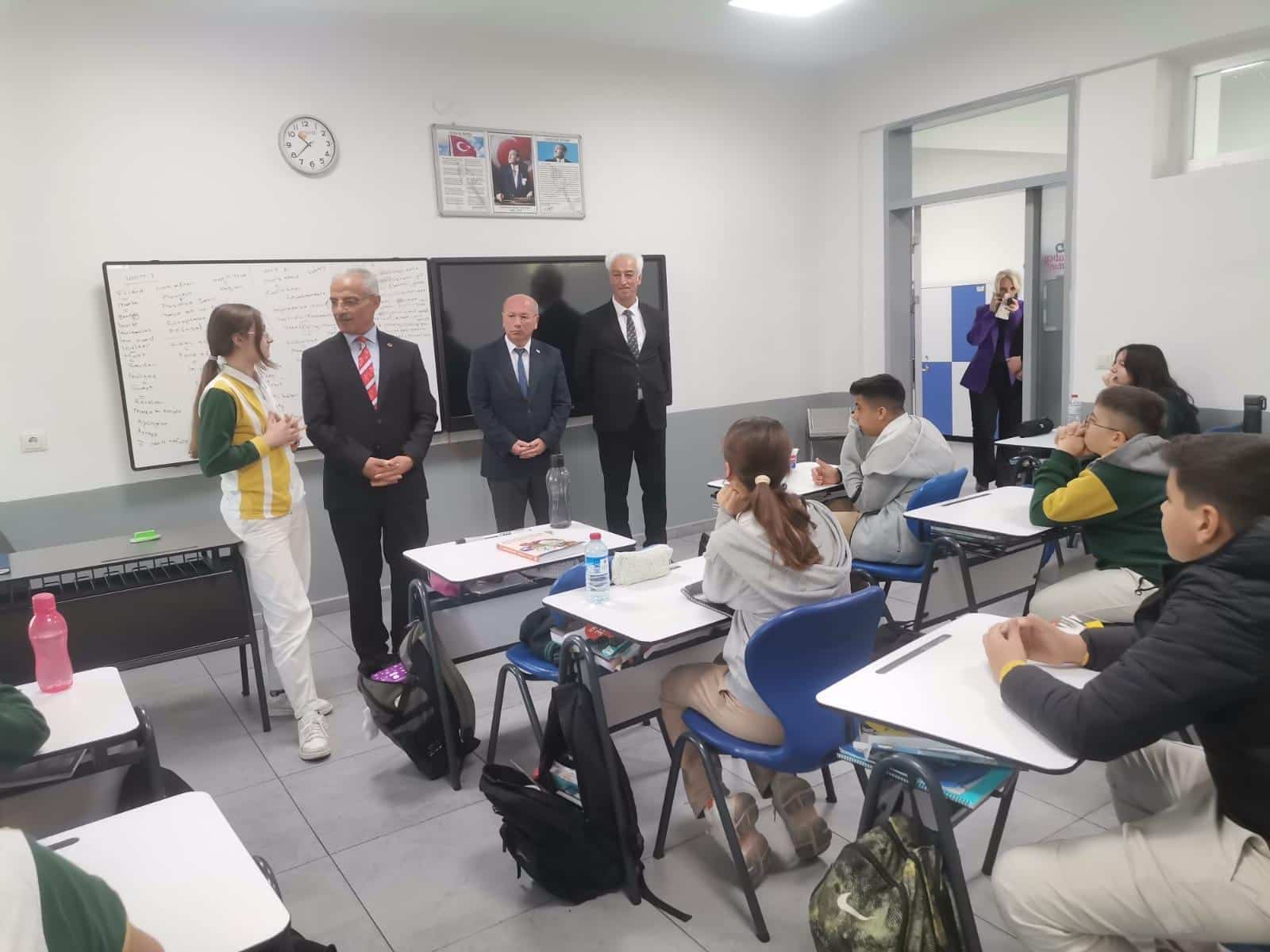 Ziyaret kapsamında okulun eğitim-öğretim faaliyetlerini, fizikî imkânlarını ve öğrenci çalışmalarını yerinde inceleyen İlçe Milli Eğitim Müdürümüz Ahmet YOZGAT, sınıfları da tek tek gezerek öğrencilerle sohbet etti. Öğrencilerin motivasyonlarını ve derslere olan ilgilerini memnuniyetle karşılayarak onlara başarı dileklerinde bulundu.