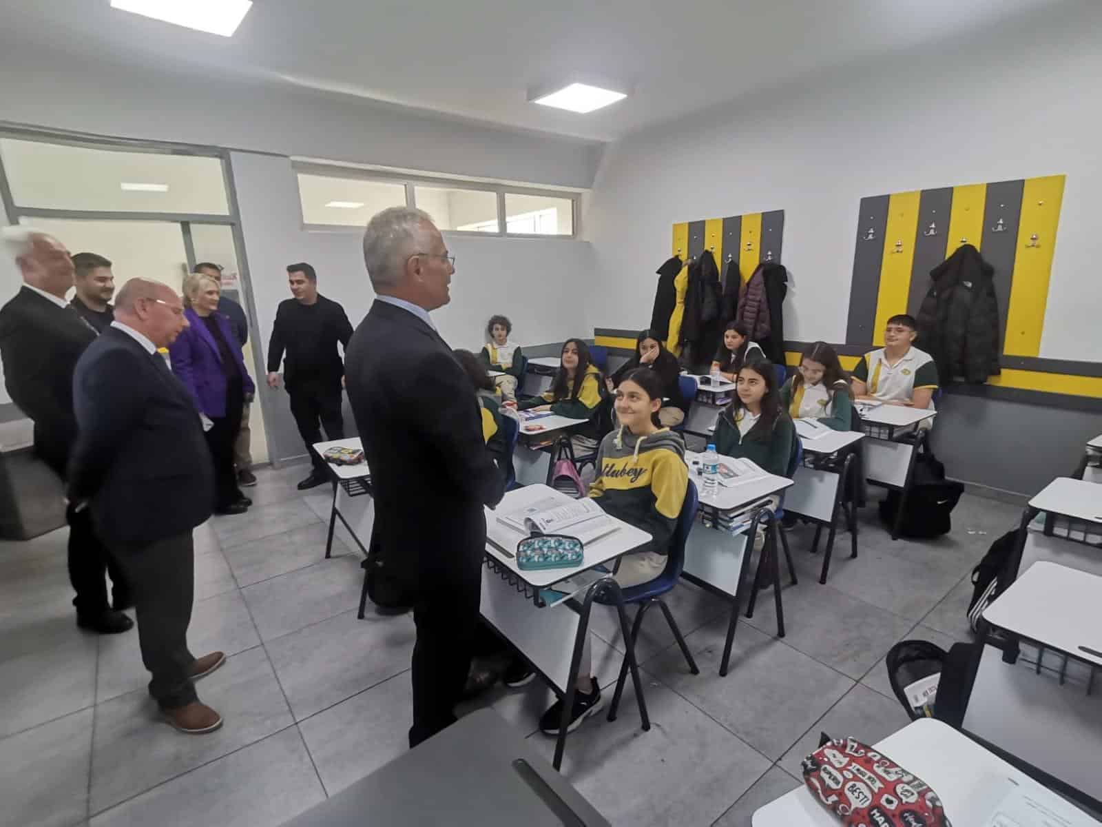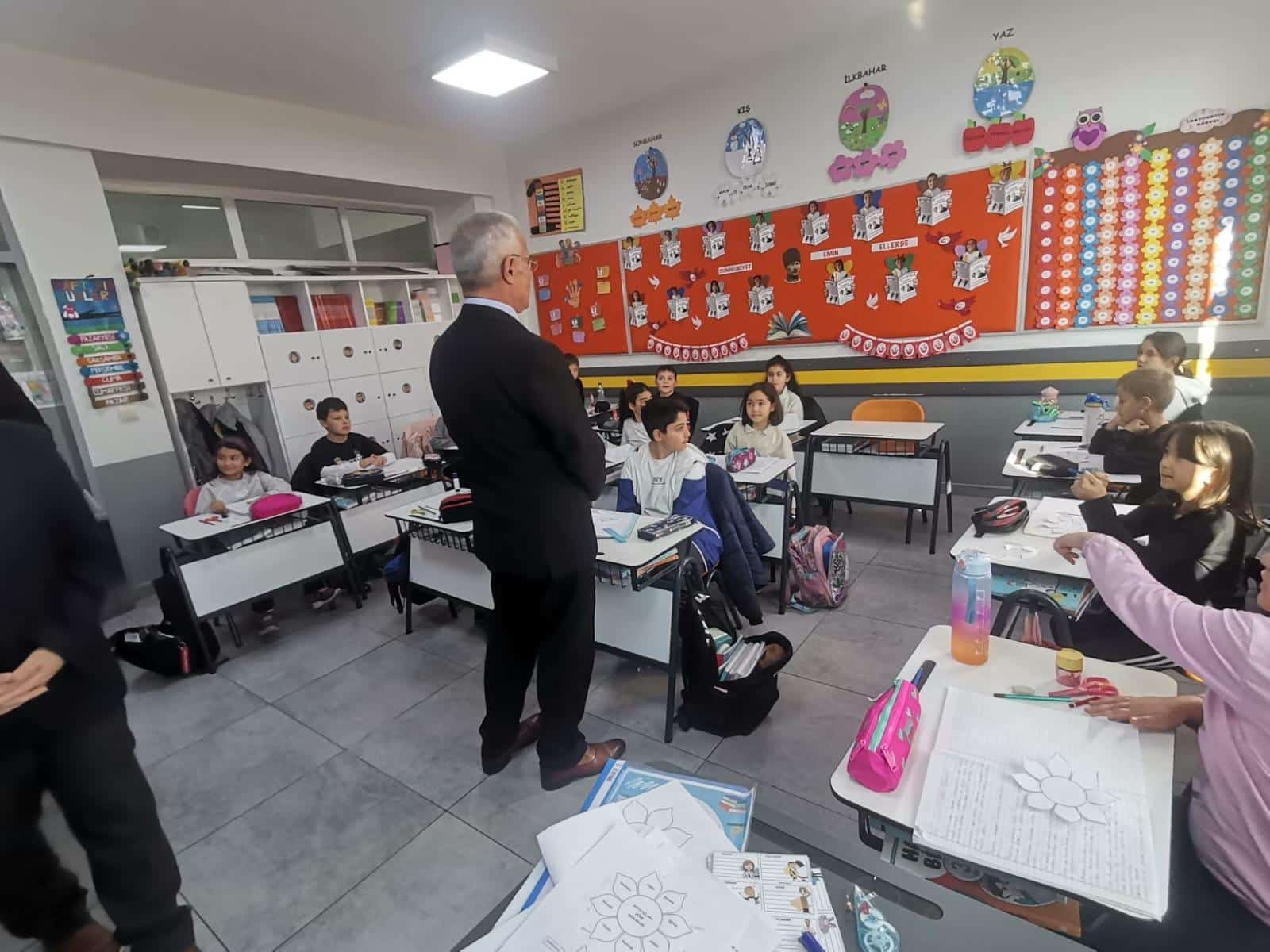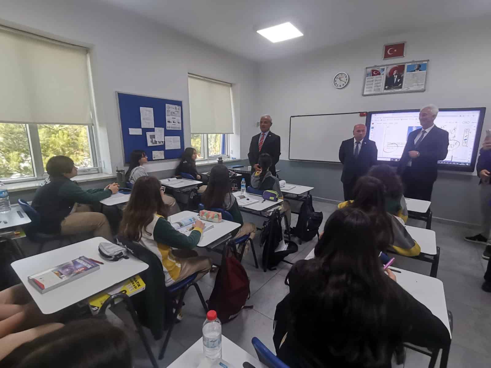Ziyaret kapsamında okulun eğitim-öğretim faaliyetlerini, fizikî imkânlarını ve öğrenci çalışmalarını yerinde inceleyen İlçe Milli Eğitim Müdürümüz Ahmet YOZGAT, sınıfları da tek tek gezerek öğrencilerle sohbet etti. Öğrencilerin motivasyonlarını ve derslere olan ilgilerini memnuniyetle karşılayarak onlara başarı dileklerinde bulundu.