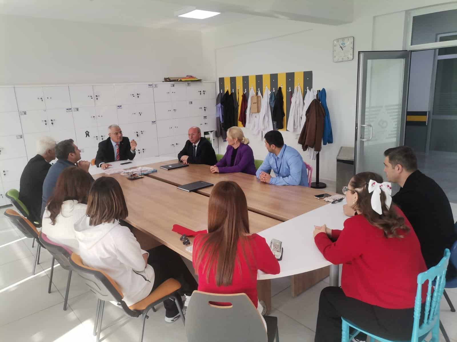Okul idarecileri ve öğretmenlerle de bir araya gelen İlçe Milli Eğitim Müdürümüz, özel öğretim kurumlarının mevzuatta belirtilen esas ve usuller çerçevesinde yürüttüğü eğitim faaliyetlerinin önemine değinerek, bu alandaki örnek uygulamaların sürdürülebilir olmasının gerekliliğini vurguladı. Okulun eğitimde kaliteyi artırmaya yönelik yaptığı çalışmalardan dolayı okul yönetimi ve öğretmenlere teşekkür ederek çalışmalarında başarılar diledi.